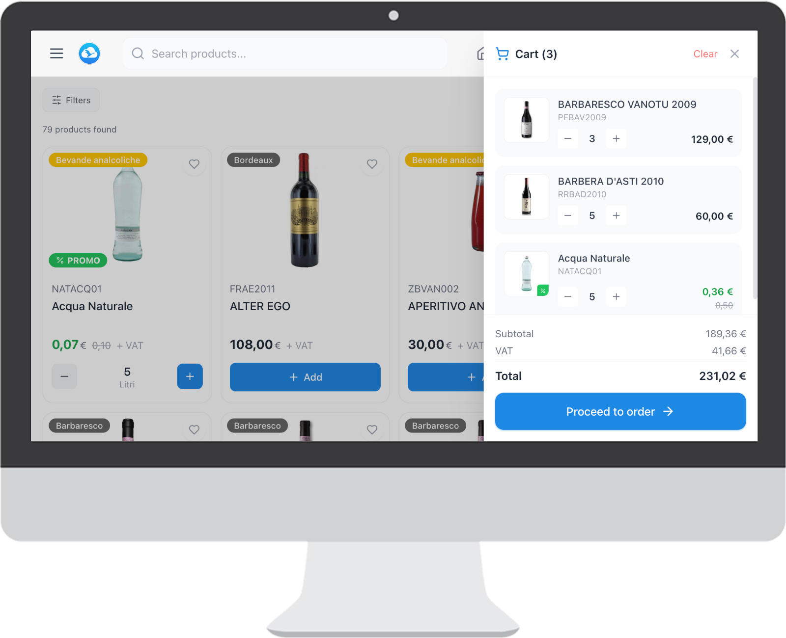 Ogni documento, che si tratti di un'offerta o di un ordine, dispone di una propria console di carrello prodotti in cui si può rapidamente intervenire per modificare quantitativi, aggiungere o togliere offerte, modificare il prezzo di listino e impostare scontistiche sia di riga che di testata.