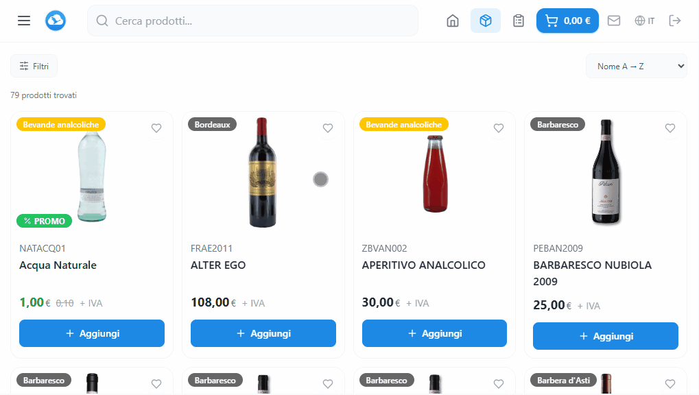 Il portale e-commerce permette al tuo cliente di visualizzare il tuo catalogo Prodotti con tutte le classificazioni che hai configurato in Goose: dalle MacroFamiglie alle Marche passando per le Categorie Commerciali.